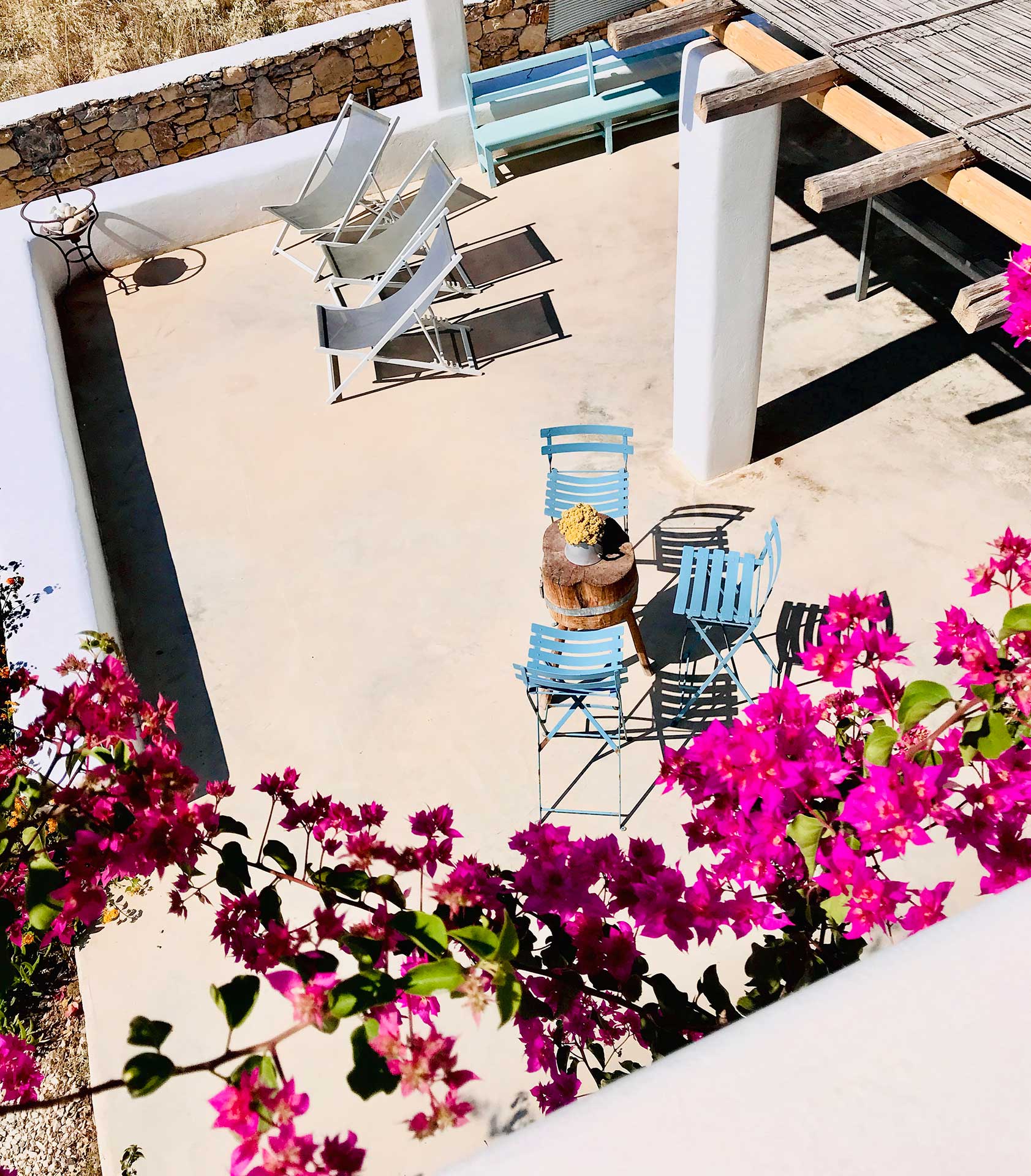 Villa Theia consists of three separate units: EOS, Selene, and a third module occupied by the owners. EOS and Selene can be rented individually or together for larger groups.